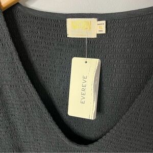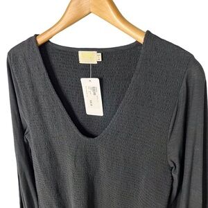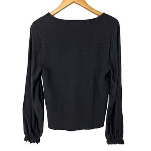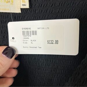 Evereve Nation Bunny Smocked Tee Shirt Black Size XL Long Sleeve Scoop Neckline