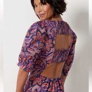 Evereve Noelle Open Back Floral Maxi Dress Size S Puff Sleeve Cotton