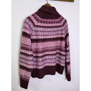 Evereve Petra Fair Isle Nordic Turtleneck Sweater Women’s M Maroon Pink Cozy
