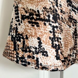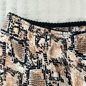 Elevate your wardrobe with this chic snake print skirt. Dress it up or down. Perfect for any occasion, this skirt features a trendy design in shades of brown and cream.