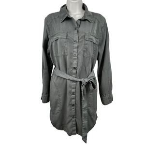 Evereve Peyton Shirt Dress Utility Dress Button Up Pockets Belted Olive Medium