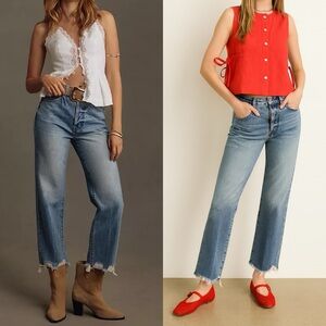 Evereve Pistola Cassie Chewed Raw Crop Straight High Jeans