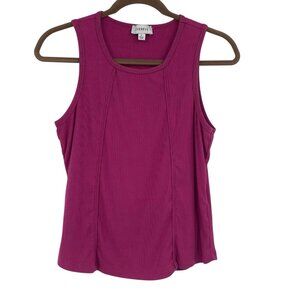 Evereve Ribbed Tank Top Size L Fuchsia Crewneck Stretch Sleeveless Casual
