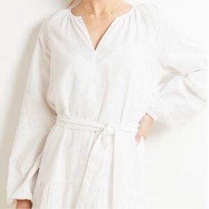 Cut from a textured cotton fabric, this bright white Josephina dress will lighten up your look and is easily dressed up or down with the switch of a shoe. This fully-lined style features a split neckline, gathered bishop sleeves, and a tiered maxi silhouette.
