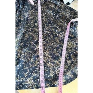 Evereve Sasha Satin Abstract Print Buttoned Blouse Shirt Top Size M Black Olive