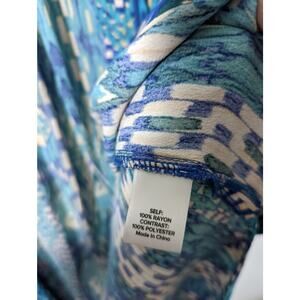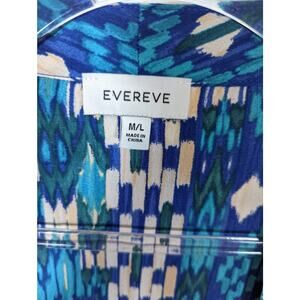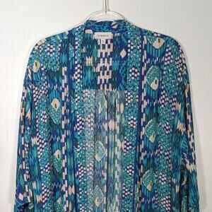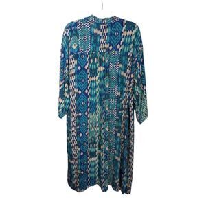 Evereve Sienna Maxi Open Front Kimono Blue Geometric Print Ikat Long Line M/L