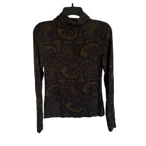 Evereve Size S Long Sleeve Paisley Turtle Neck Top Modal Blend Soft Fall Modest