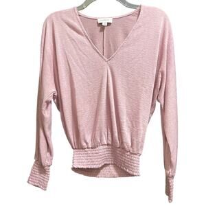 Evereve Size XS Light Pink/Purple Long Sleeve Cinched Waist Sweater Blouse