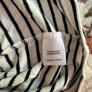 Wardrobe Staple, this black and white striped ribbed ls top features thumb hole cuffs and a thick, stretchy knit. Size medium with approximate measurements laying flat of 18" chest and 23" length. In excellent used condition from a smoke-free, dog friendly home.