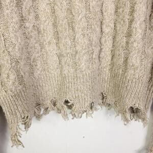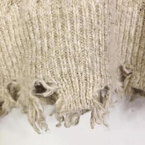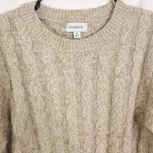 Evereve Sweater Womens M Chewed Cut Hem Oatmeal Neutral Ribbed Knit Crewneck