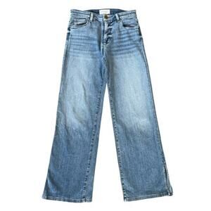 Evereve The Ever Trouser Jeans. Size 28. High rise. Wide leg with small side slits. Light wash.