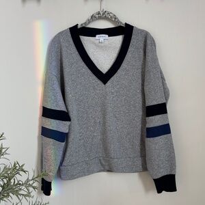 Evereve Varsity Small Gray V-neck Sweatshirt