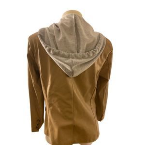 Evereve Vegan blazer -S tan , gray sweatshirt insert , NWT ,