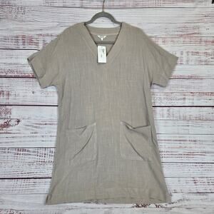 Evereve Vienna Dress S Linen Blend Fawn Taupe Minimal Neutral Basic Timeless NWT