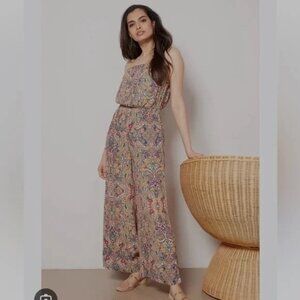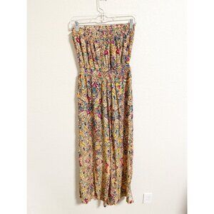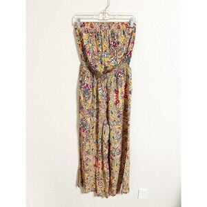 Evereve Womens Astrid Jumpsuit Smocked Wide Leg Strapless Paisley Print Medium