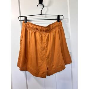 Evereve Women's Shane Tie Waist Flat Front Pull-On Shorts Vacation Burnt Gold Size Small