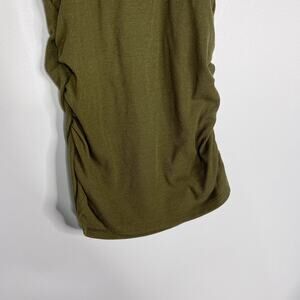 Evereve XSmall Olive Green Linen Rib Ruched Tank Top Crew Neck Side Seam Ruching