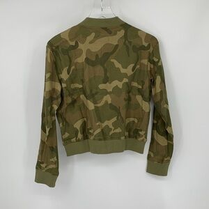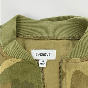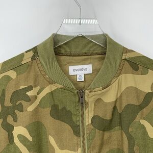 Evereve bomber jacket coat green camo linen blend zipper lightweight new X-Small