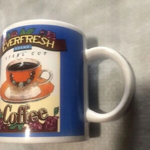 Keywords: coffee mug, everfresh, steel cut coffee, floral mug, coffee cup, kitchen decor, vintage mug, collectible mug, tea cup, B.I. Inc., ceramic mug, novelty mug