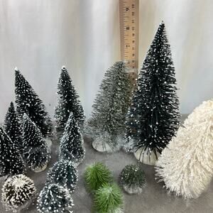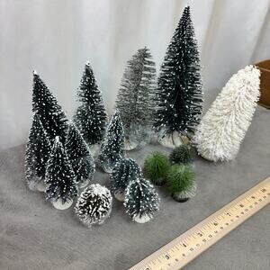 Evergreen Bottle Brush Trees Shrubs Lot of 15 Christmas Village Lemax More Snowy