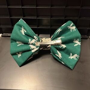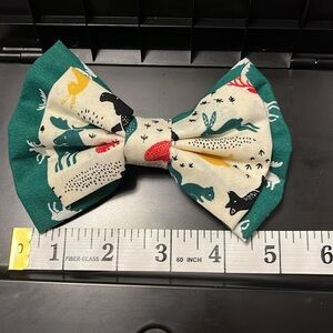 4” x 5” on alligator clip for versatility as a hairbow or as a bow tie