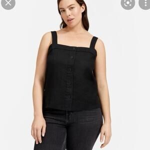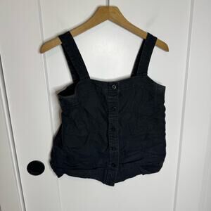 Everlane 100% Linen Black Button Front Boxy Crop Flowy Tank Top Size 2