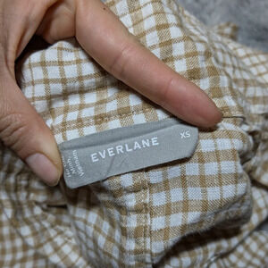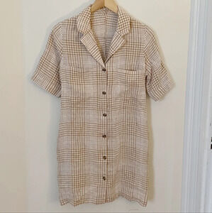 Everlane 100% Linen Dress Plaid Cream Tan Mini Short Sleeve XS Shirtdress Pocket