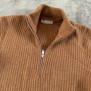 Some normal wear and fuzziness from use, men's Everlane 100% Wool half zip pullover sweater. No holes or stains.