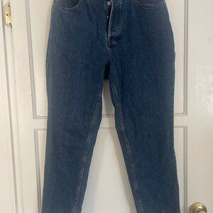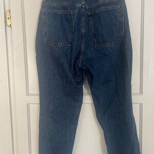 Curve-friendly classic mom jeans with a high waist (30") and 26.5" Inseam / Deep Atlantic color. Worn and washed once.