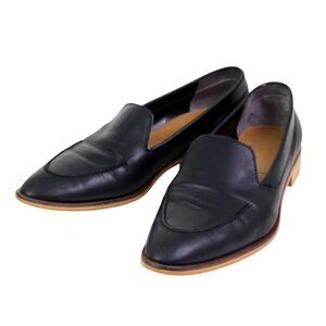 Everlane BLACK GENUINE LEATHER LOW HEEL ALMOND TOE SLIP ON LOAFER SHOES Size 10