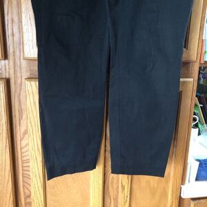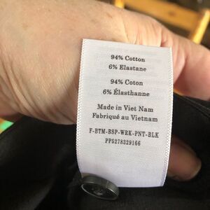 Classic black pants for women, perfect for any occasion. Comfortable and stylish. These Everlane Black Bi-Stretch Work Pants are designed for a professional and stylish look. Made from a comfortable cotton blend twill fabric with a side zip closure, these high-rise pants feature a straight leg and a flat front for a polished appearance. The size 12 pants have a 32-inch waist and a 27-inch inseam, perfect for a regular fit on a business casual or formal occasion. The lightweight and stretchy material make them suitable for all-day wear, providing both comfort and style for the modern woman.
