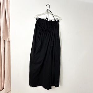 Stylish black cropped jumpsuit. Features spaghetti straps. Perfect for casual outings.