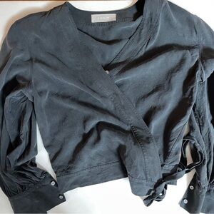 Everlane Blouse Long Sleeve Wrap Top button closure with tie black silk size 4