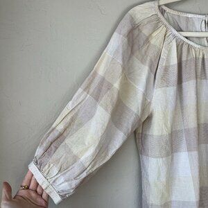 Everlane Blouse Ruched Air Toffee Plaid 6 Lightweight Neutral Minimalist Boho