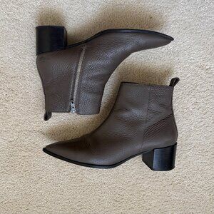 Gorgeous high quality leather boots from Everlane with pointed toe, silver zipper, and low heel.