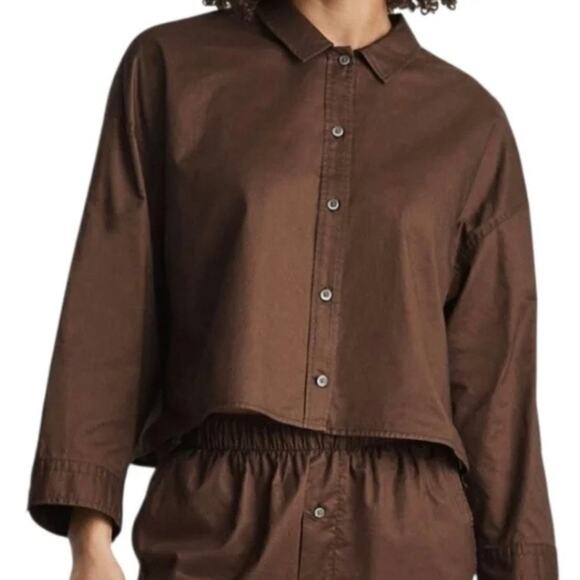 Everlane Boxy Long Sleeve Button Down Shirt Women XS BrownThe Woven Pajama Top