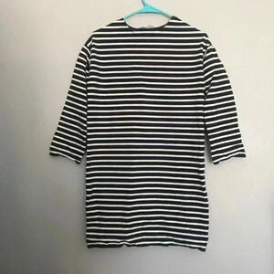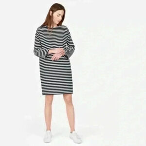 Size XXS Everlane Breton black and white striped shift dress. Has long sleeves and zip at the shoulder detail. Oversized fit. Excellent used condition