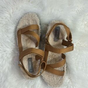 Experience effortless style with Everlane's brown sandals, featuring a minimalist design with two sleek straps. Crafted for comfort, the cushioned footbed ensures all-day wearability, making them perfect for summer adventures.