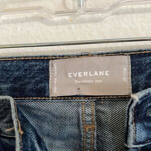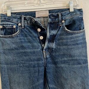 Everlane Button Fly Medium Blue Distressed “ The 90’s Cheeky Jean” Cropped 33