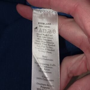 The Everlane Cashmere Sweater in small size and blue color is a classic and preppy pullover featuring a crew neck and tight-knit fabric. Ideal for travel, casual, or business occasions, this lightweight sweater is breathable and perfect for all seasons, including winter, fall, and spring. Made of high-quality cashmere material, this sweater exudes a timeless and elegant style that is easy to care for with dry cleaning. Designed with a raglan sleeve and a classic fit, this sweater embodies a sophisticated and understated look.