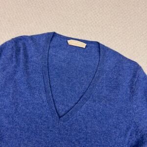 Everlane Cashmere Sweater Medium Blue Vneck Knit Pullover Preppy Classic