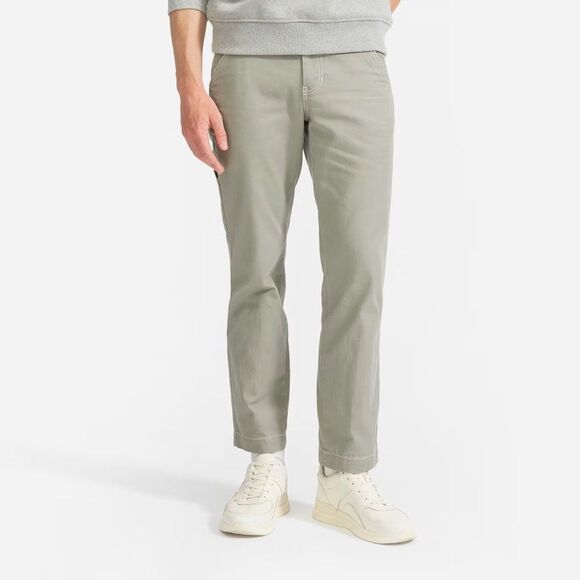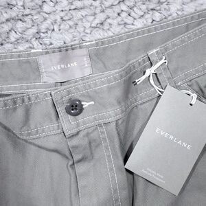 Men's Everlane Chore pants in light gray shale color. 100% cotton straight leg pants with carpenter hammer loop. New with tags. Men's size 40 x 32, real measurements shown in photos with pants laid flat: