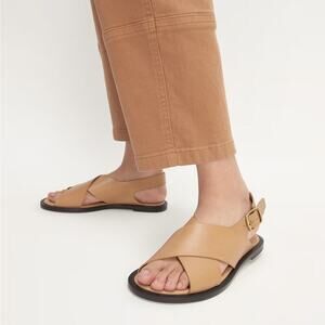 Everlane sandals, City Crossover Sandal, size 8 shoes, buckle slides, taupe leather sandals, neutral sandals, summer flats, trendy slides, Everlane shoes, adjustable sandals, leather crossover sandals