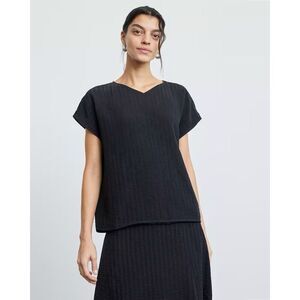 Everlane City Stripe V Neck Top Short Sleeve Pullover Black Shirt oversized
