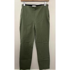 Everlane Classic Preppy Minimalist Side Zip Bi-Stretch Work Pant Olive Stretch Size 2. This piece features a mid rise, slim leg, regular length, and exposed zipper on side seam with 4-way stretch for holds-you-in comfort and flexibility that moves with you. WLF 14-15, Rise 9.5, inseam 26 inches. Retail $88. Excellent used condition, no flaws noted. Please don't hesitate to ask any further questions. See measurements in photos. Smoke free pet friendly home. Check out my other listings for a bundle deal!