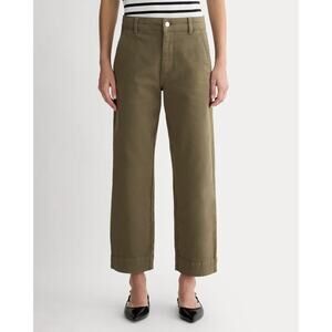 Everlane Cotton Utility Straight Leg Kalamata Olive Green Twill Pants, Size 12