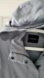 Zipperhead fell off of front zipper (will include with shipment). Jacket still can still closed with snaps. Small mark on back of hood. See last photos for both.