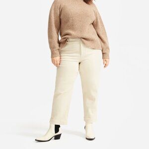 Size 0 Everlane Straight-Leg Pants with a waist-nipping rise and a leg-lengthening cropped cut in off-white, cream wash. Slim fit through hips and thigh. Inseam: 26" Excellent used condition, no stains or holes.