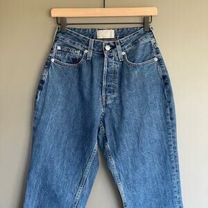 Everlane Curvy '90s Cheeky Straight Jean in Northridge Wash, Size 26, 100% Organic Cotton, Mid Blue Wash, High Rise, High Waist, High Waisted, Rigid Denim, Premium Denim, In like new condition with no flaws or signs of wear.