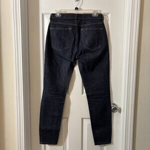 The Everlane Dark Wash Ankle Jeans in size 27 are a stylish and versatile addition to any woman's wardrobe. Made from a comfortable cotton blend denim fabric with a mid-rise fit, these jeans feature a zip and button closure, a 5-pocket design, and a 27.5-inch inseam. The dark wash and solid blue color make them perfect for wearing in the summer, fall, or spring seasons. With a classic ankle style and stretchy construction, these jeans offer both fashion and comfort for everyday wear.